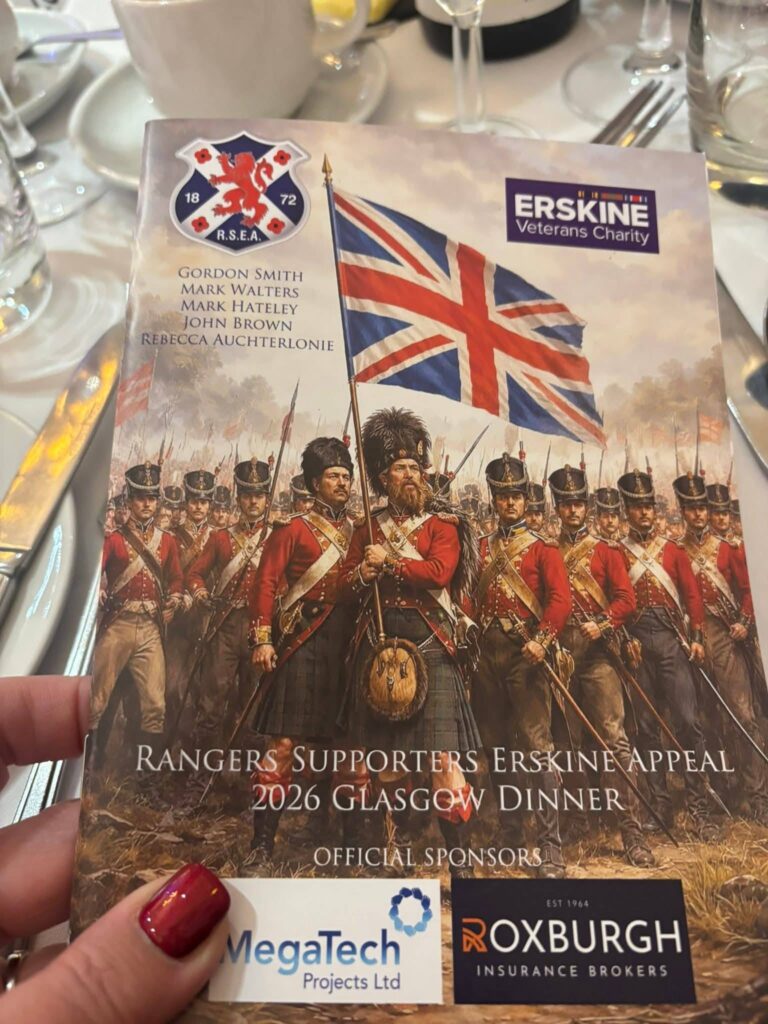 The 20th of March saw the RSEA Glasgow Dinner at the Sherbrooke Castle. Hosted as ever by Gordon Smith the sell out crowd heard Mark Walters, Mark Hateley and Bomber Brown tell stories of their time in football and were entertained with a selection of Rangers songs from Rebecca Auchterlonie. A total of £15,050 was raised on the night. Thanks to everyone who attended and took adverts in the Event programme. Thanks also to our main sponsors, Megatech Projects and Roxburgh Group.