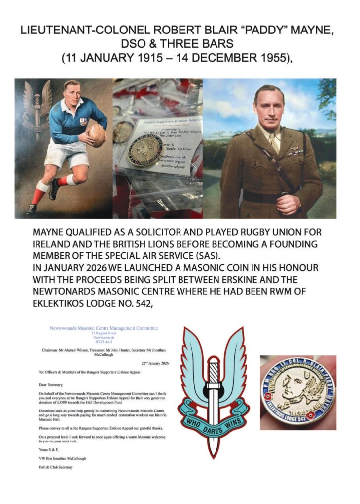 It has been a busy start to the year with the sale of the Paddy Mayne masonic coins raising £7000 for Erskine and the Newtonards Masonic Centre. The coins are sold out but we may have other similar products later in the year. Make sure you are on our mailing list to be kept informed.